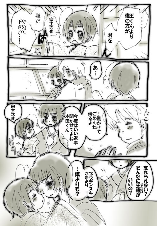 竹林 男台湾くん登場記念 湾×日(中)←露 台湾ちゃんと同じく捏造注意 養父子設定 でもお父様でなく宗主様よばわり マイロードみたいなかんじで…ファザーファ●●ー?この本田さんは総受けっぽいです