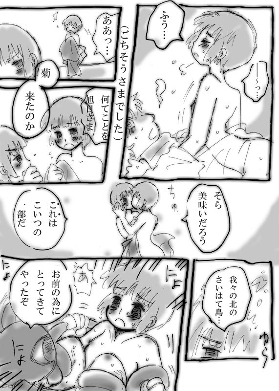 ! 露日 鎖国時代、まだイヴァンさんが恋に落ちてない(……)頃。ホラー気味だけどギャグかもたいしたことないけど裸 触手×本田注意 そして大変アイタタタな事になっています 15禁でお願いします 大丈夫そうな方はどうぞ ↓ ↓